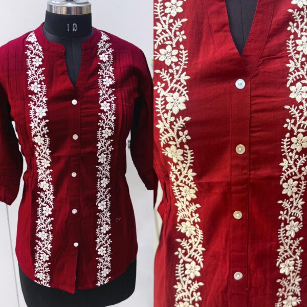 Maroon Cotton Thread Embroidery - Jeans Top - PMD2