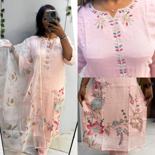 Baby pink Chinon kundan with organza Dupatta kurta set - PMA82