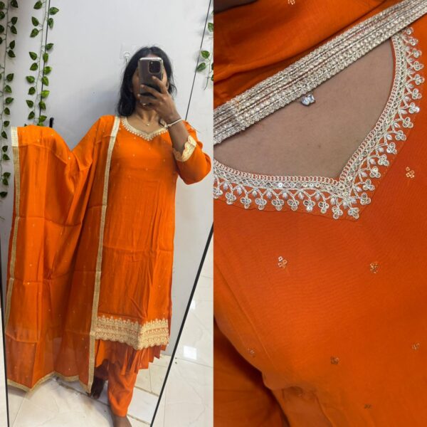 Orange pure Roman with Thread embroidery Anarkali kurta set - PMA85