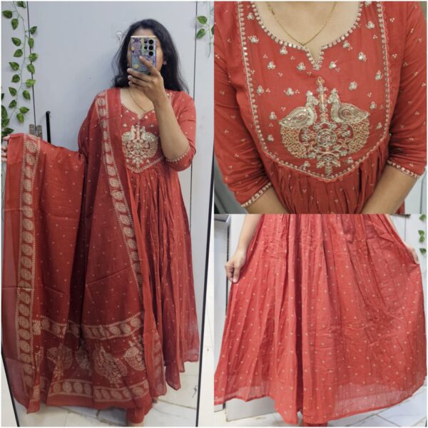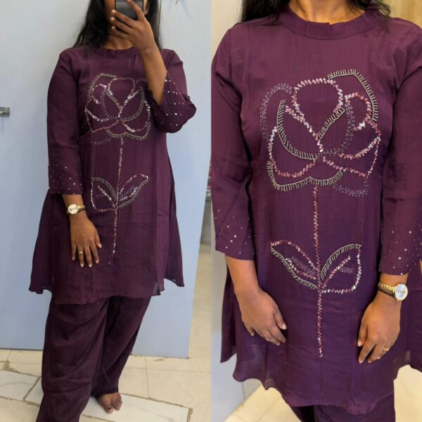 Dark Wine Chinon Handwork Kurta Set Palazzo Bottom PREMIUM- PMA281