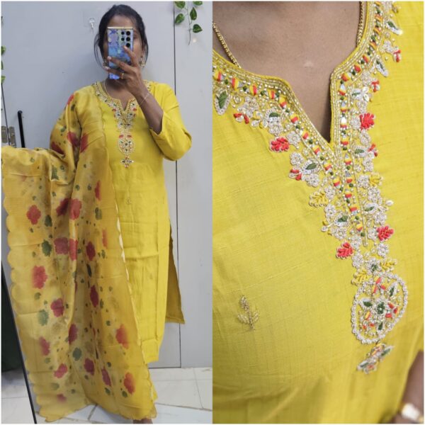 Haldi Yellow Dola Silk Thread Beats Work 3pc Kurta Set