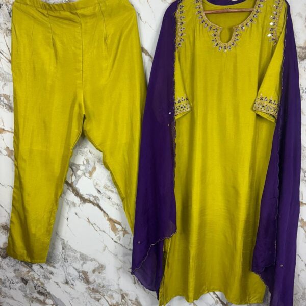 Pure Dola Mehandi Green kurta with mirror thread embroidered contrast dupatta kurta set (Prefer next Size) - PMA178
