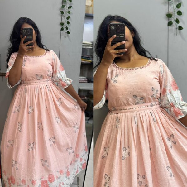 Pure Hakoba Frock Floral Baby Pink (With Lining) - PMA210