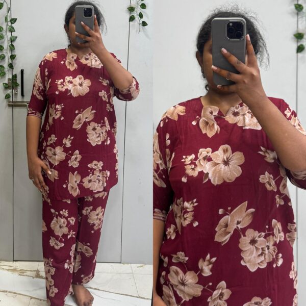 Maroon Cotton Fabric Floral Night Suit(2pc – Prefer Next Size) - PMA236