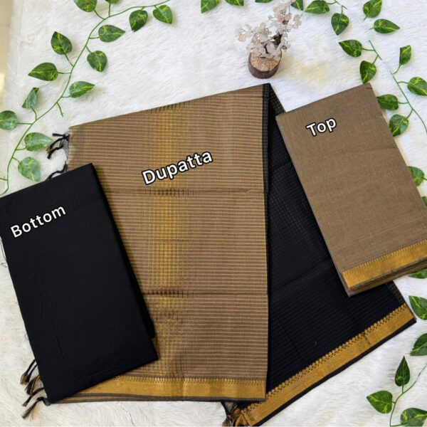 Coffee Brown Handloom Cotton Weaved 3pc Unstitched Dress material (Each 2.5m) – PMK15