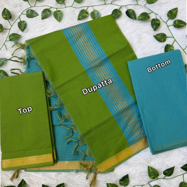 Parrot Green Handloom Cotton Weaved 3pc Unstitched Dress material (Each 2.5m) – PMK19
