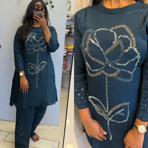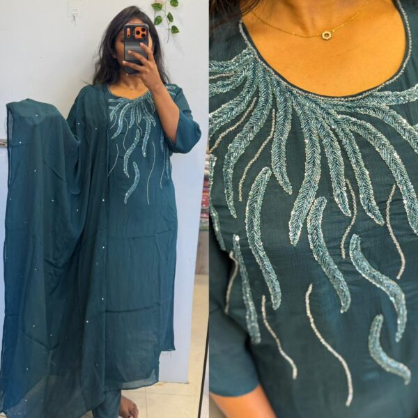 Teal Green Chinon Handwork Kurta Set Palazzo Bottom PREMIUM- PMA282
