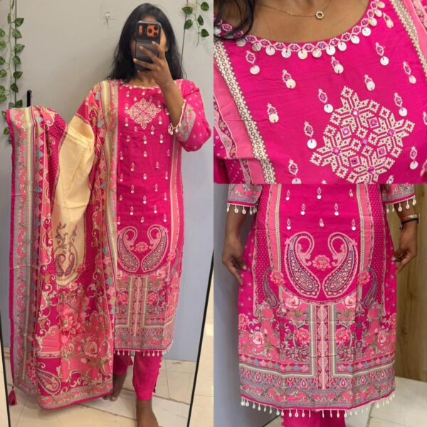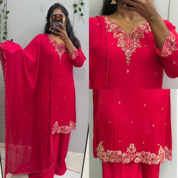 Rani Pink Chinon Handwork Kurta Set Palazzo Bottom PREMIUM- PMA279