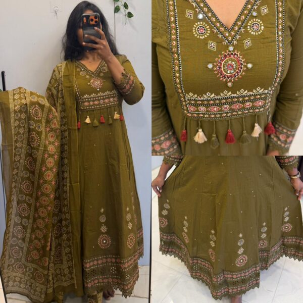 Mehandi Green Cotton Anarkali Embroidery 3pc Kurta Set PREMIUM - PMA286