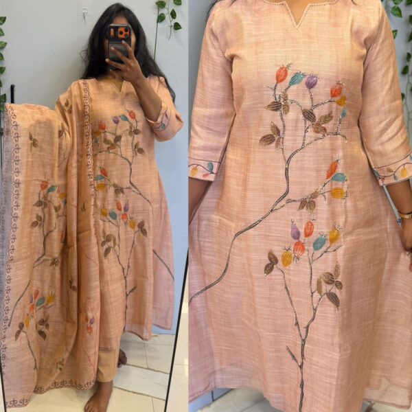 Orange Premium Jamdani Linen with mulcotton lining all over embroidery kurta set (Prefer next size) - PMA55