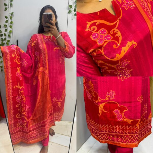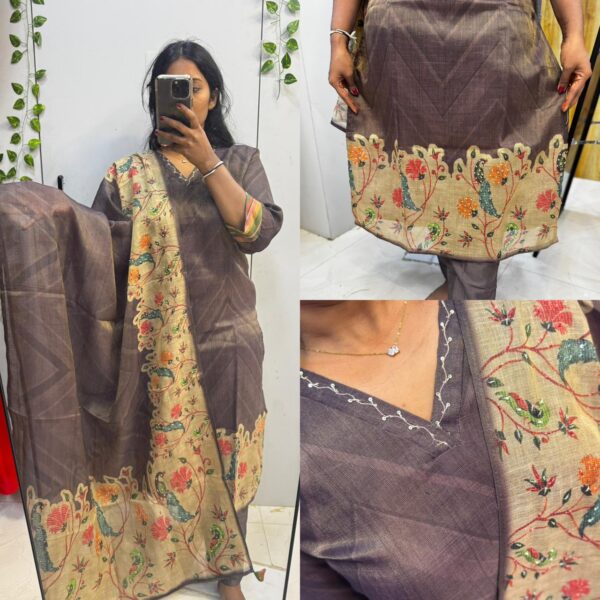 Necklace Design 3pc Kurta Set Mul Chanderi (A Line)