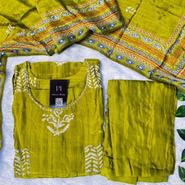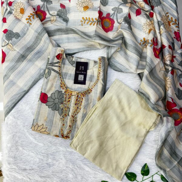 ₹1,899.00Original price was: ₹1,899.00.₹1,595.00Current price is: ₹1,595.00.Pure muslin Detailing Embroidered kurta set