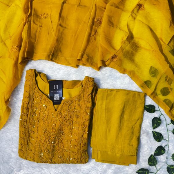 ₹2,999.00Original price was: ₹2,999.00.₹2,495.00Current price is: ₹2,495.00.Lemon Pure crape Organza viscose Dupatta kurta set