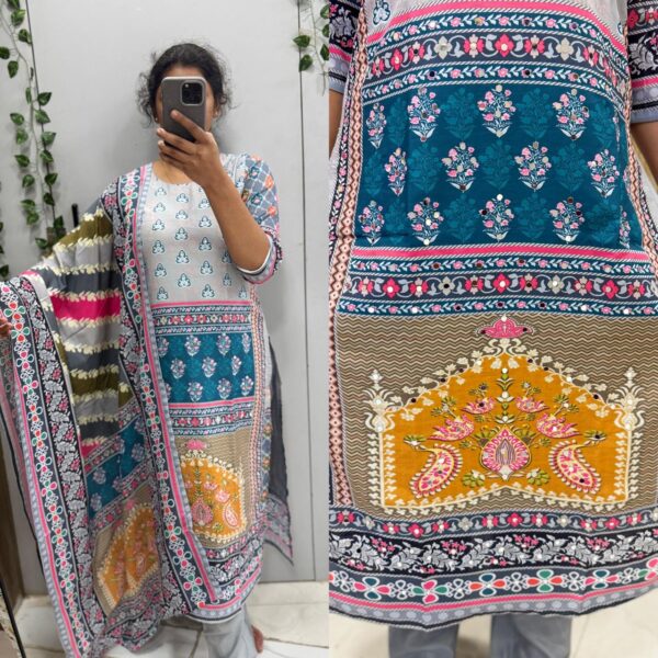 ₹1,550.00Original price was: ₹1,550.00.₹799.00Current price is: ₹799.00.Blue Thread Embroidery 3pc kurta set - PMS023