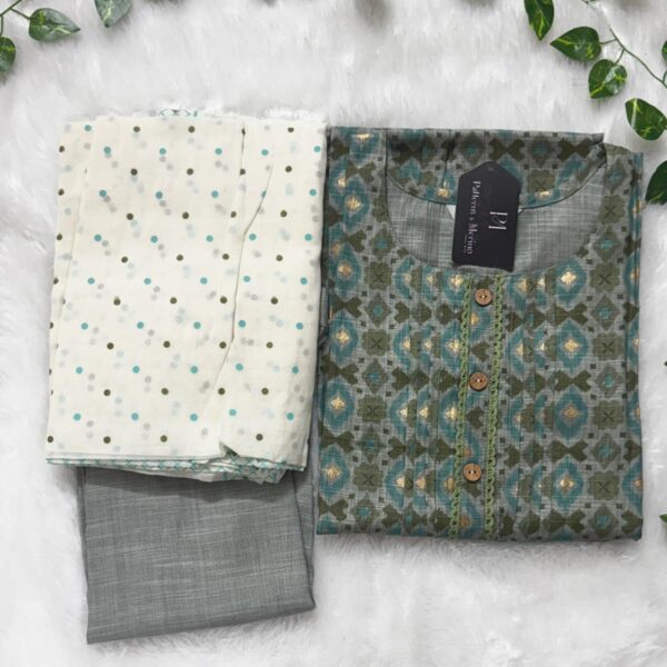 Green Cotton Fabric 60 * 60 kurta set - PMS001