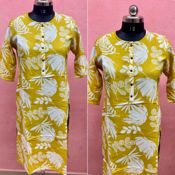 ₹850.00Original price was: ₹850.00.₹450.00Current price is: ₹450.00.Yellow Floral Print Cotton Kurti