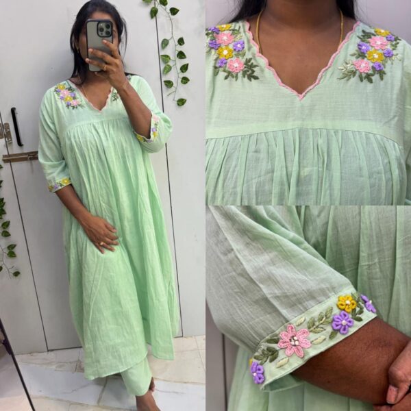 ₹2,500.00Original price was: ₹2,500.00.₹1,999.00Current price is: ₹1,999.00.Pista Green Pure Mulcotton White Thread Embroidery (2pc) - PM03M
