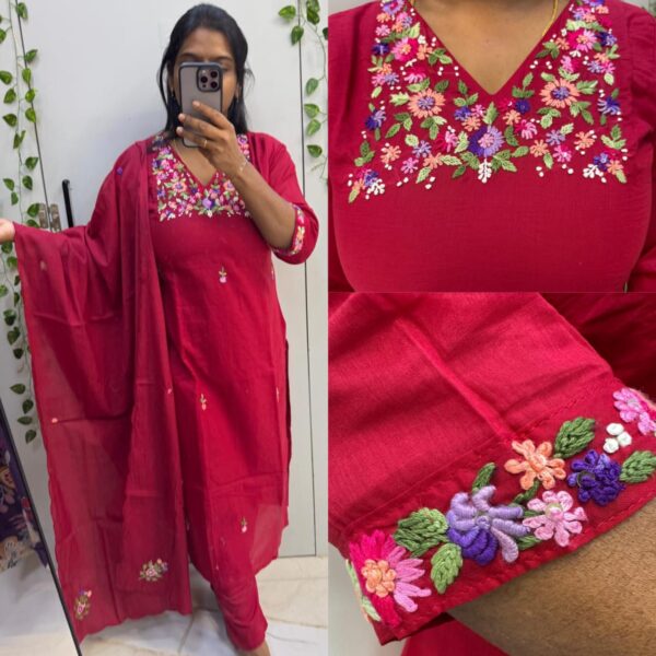 ₹2,000.00Original price was: ₹2,000.00.₹1,850.00Current price is: ₹1,850.00.Red Mul Chanderi Thread Embroidery Work - PM04