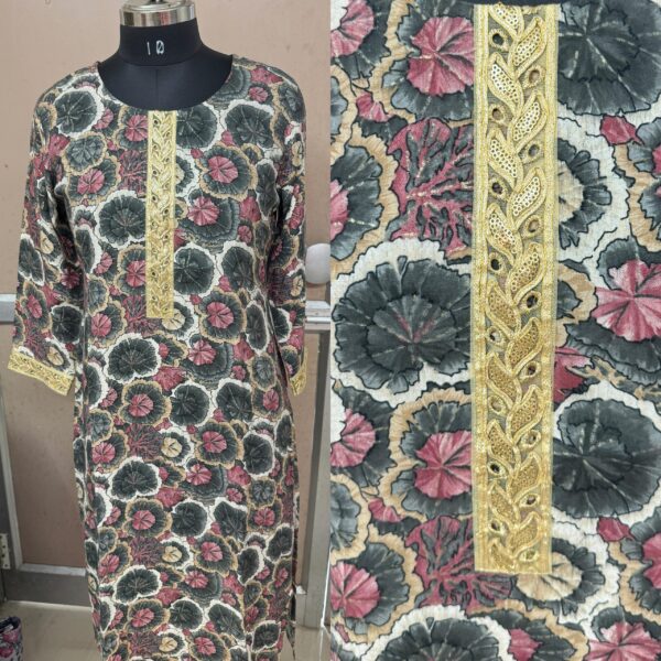 Blue Kurti With Gold Thread Embroidery - PMK002