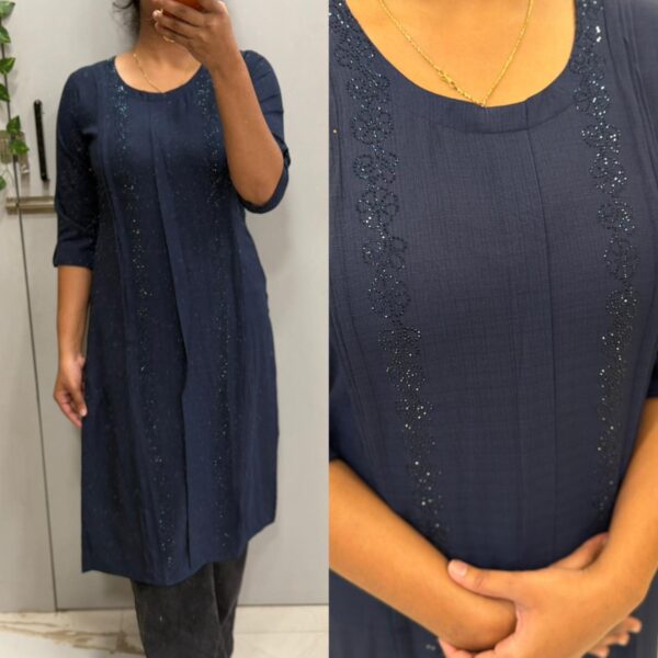 Dark Navy Blue Kurti With Thread Embroidery - PMK001