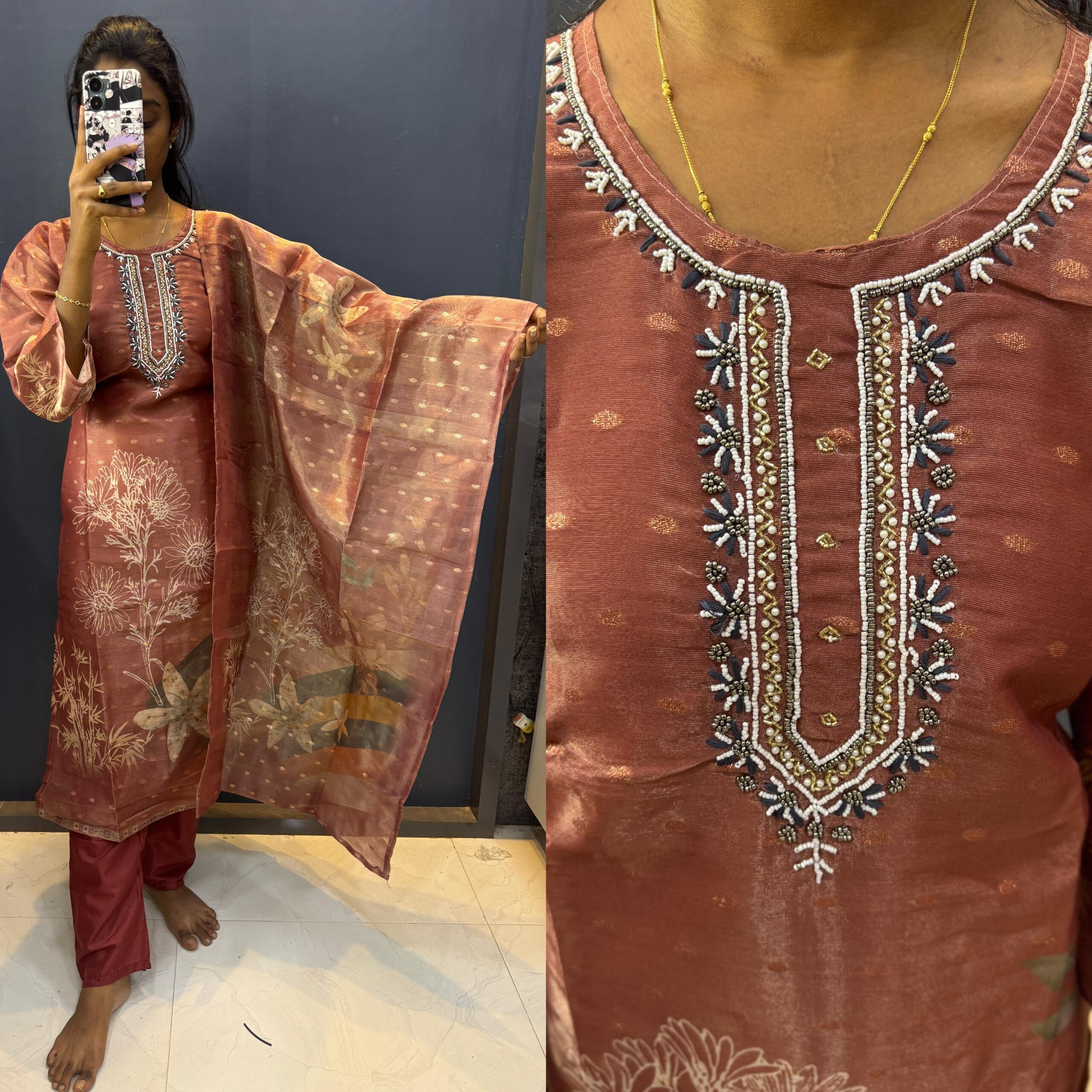 - The Brick Gold Tissue Shimmer Kurta Set is designed to redefine sophistication while ensuring maximum comfort for any occasion. Crafted with precision, this ensemble captures the essence of luxury and timeless beauty. Perfect for festive gatherings, weddings, or formal events, this kurta set combines shimmering textures with a contemporary silhouette that suits all age groups and complements diverse style preferences.