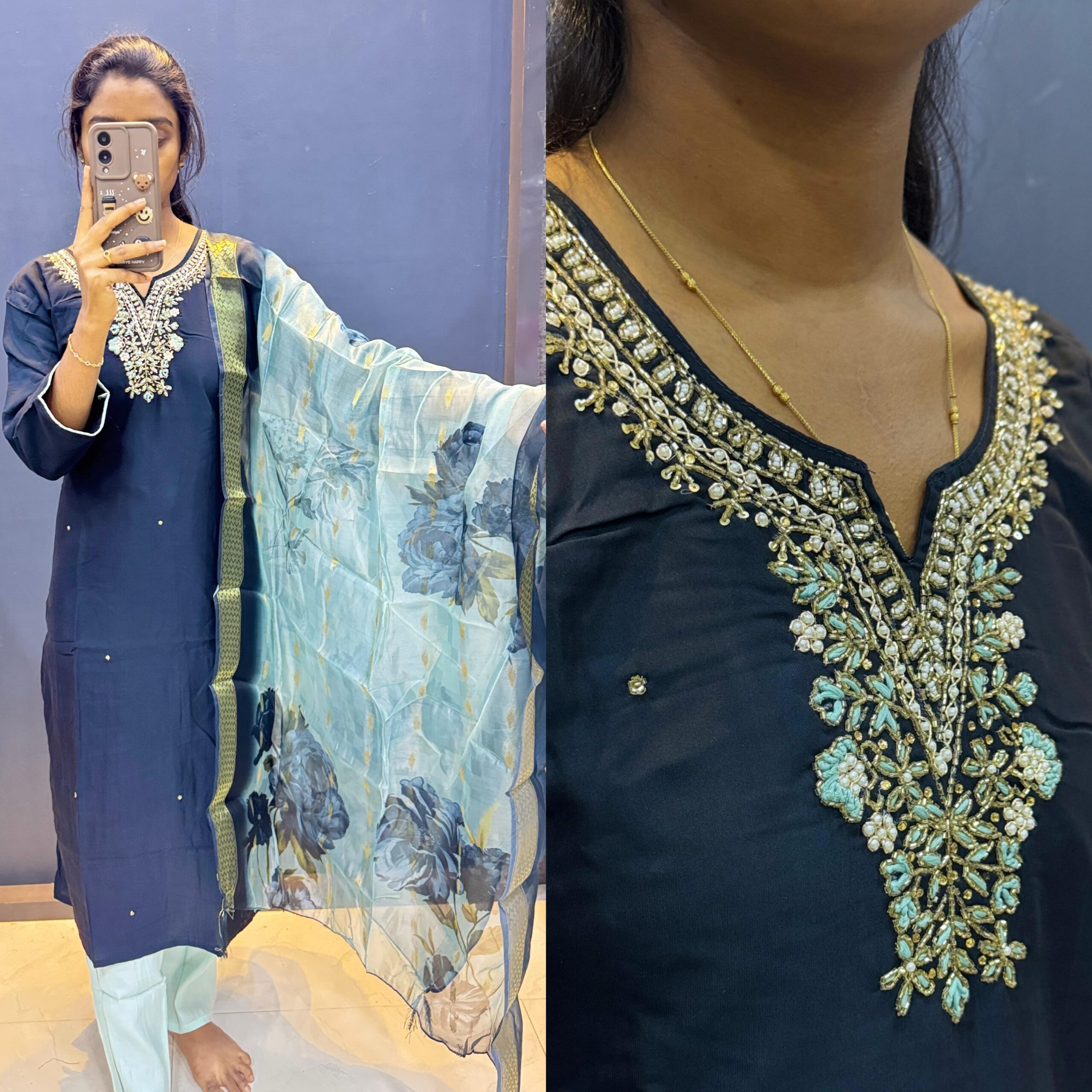 - Designed using high-quality fabric, the Dark Blue Beats Work Kurta Set offers breathable comfort all day long. The kurta features intricate beats work detailing, adding a touch of uniqueness and finesse to your outfit. Its dark blue hue is not only eye-catching but also versatile enough to suit diverse occasions, effortlessly combining style and practicality.