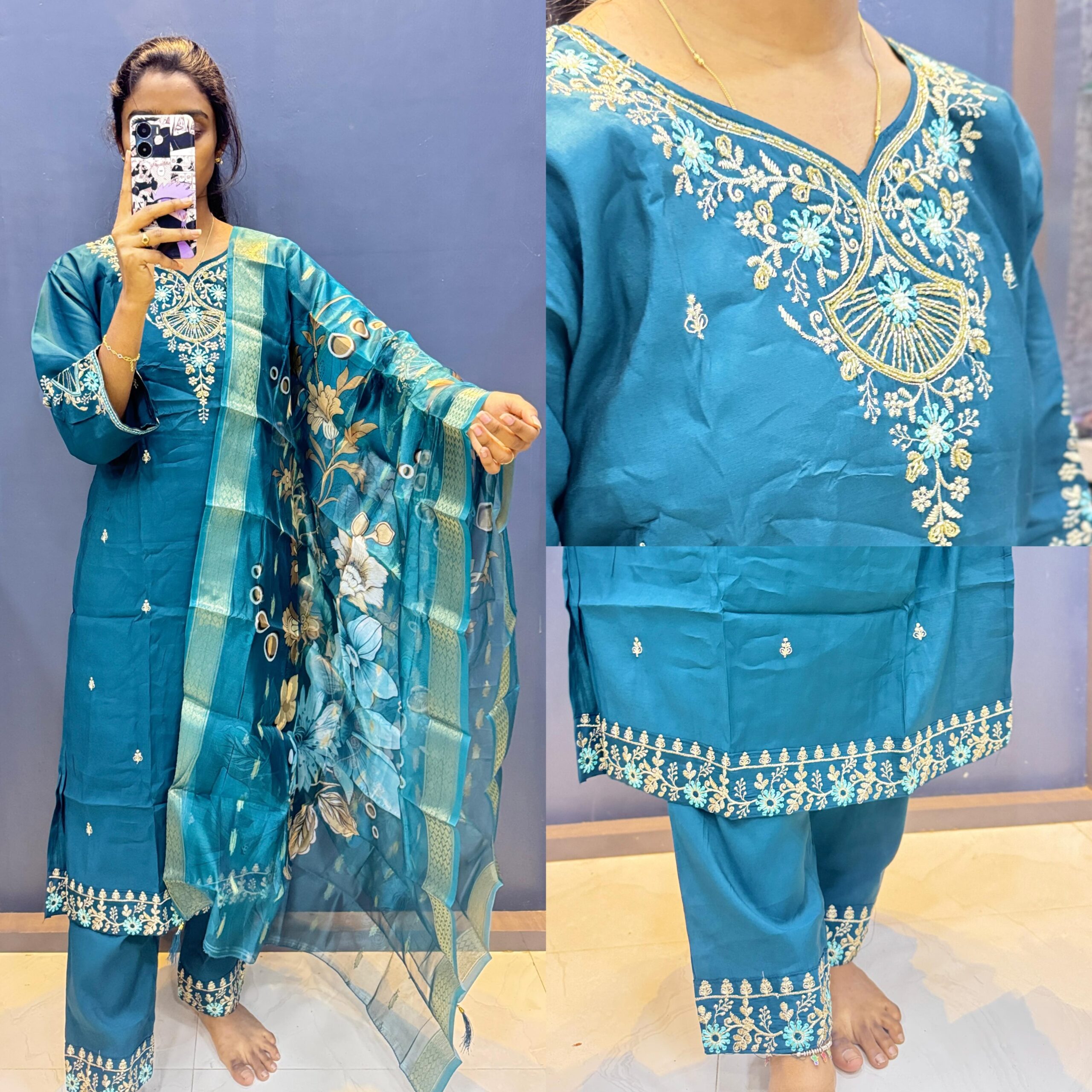 Peacock Blue Beats Work Kurta Set
