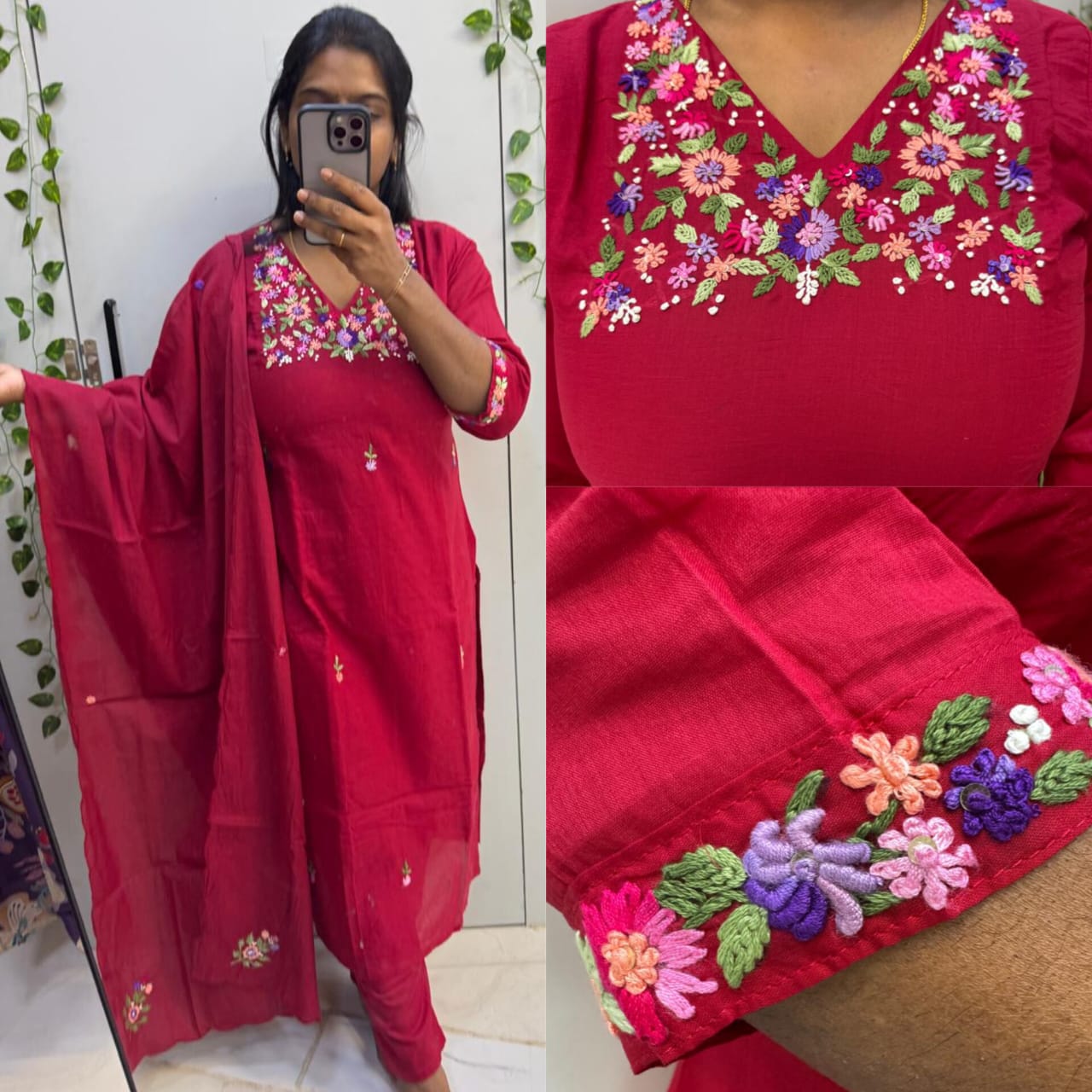 Red Mul Chanderi Thread Embroidery Work – PM04