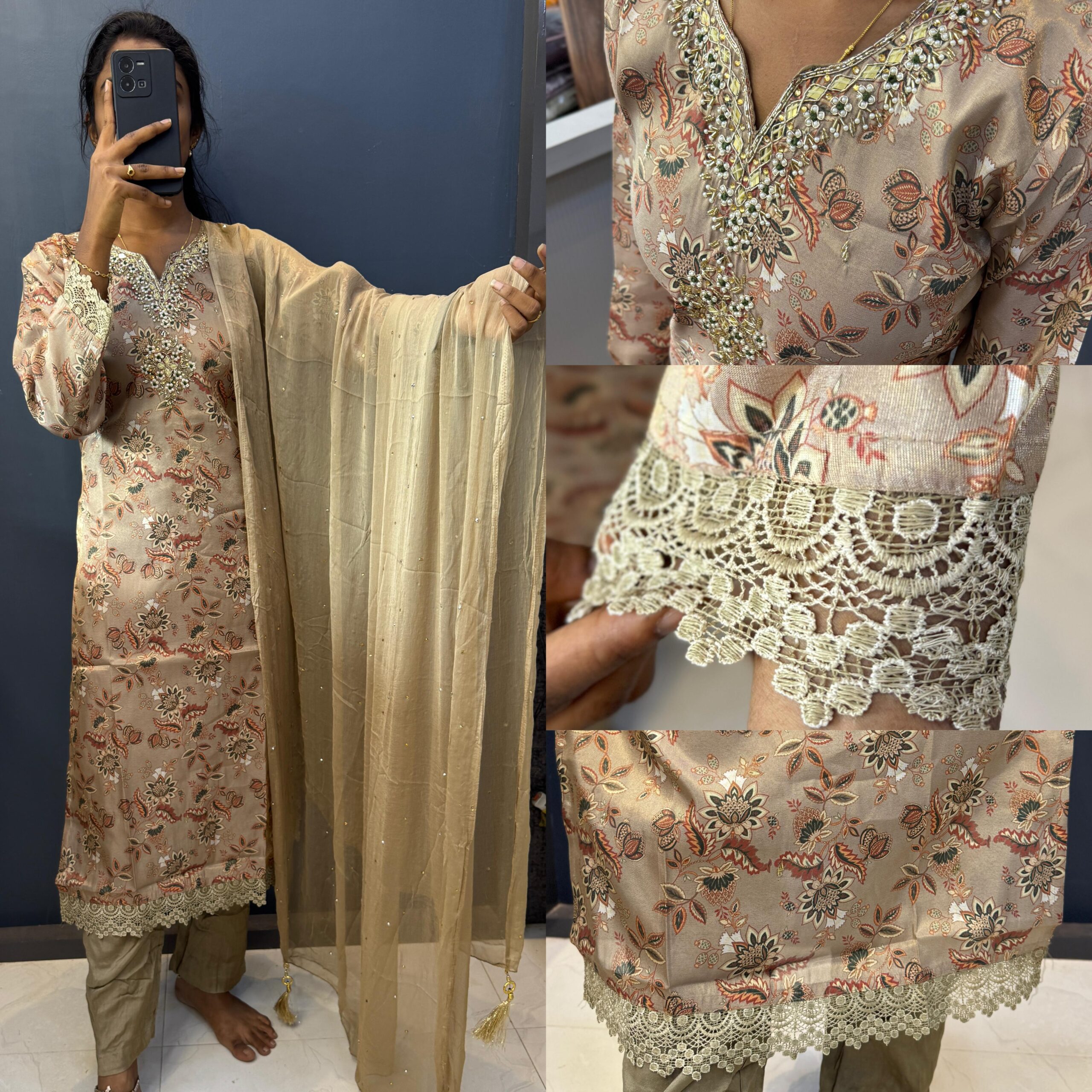 Tissue Shimmer with Embroidered Lace work Kurta Set