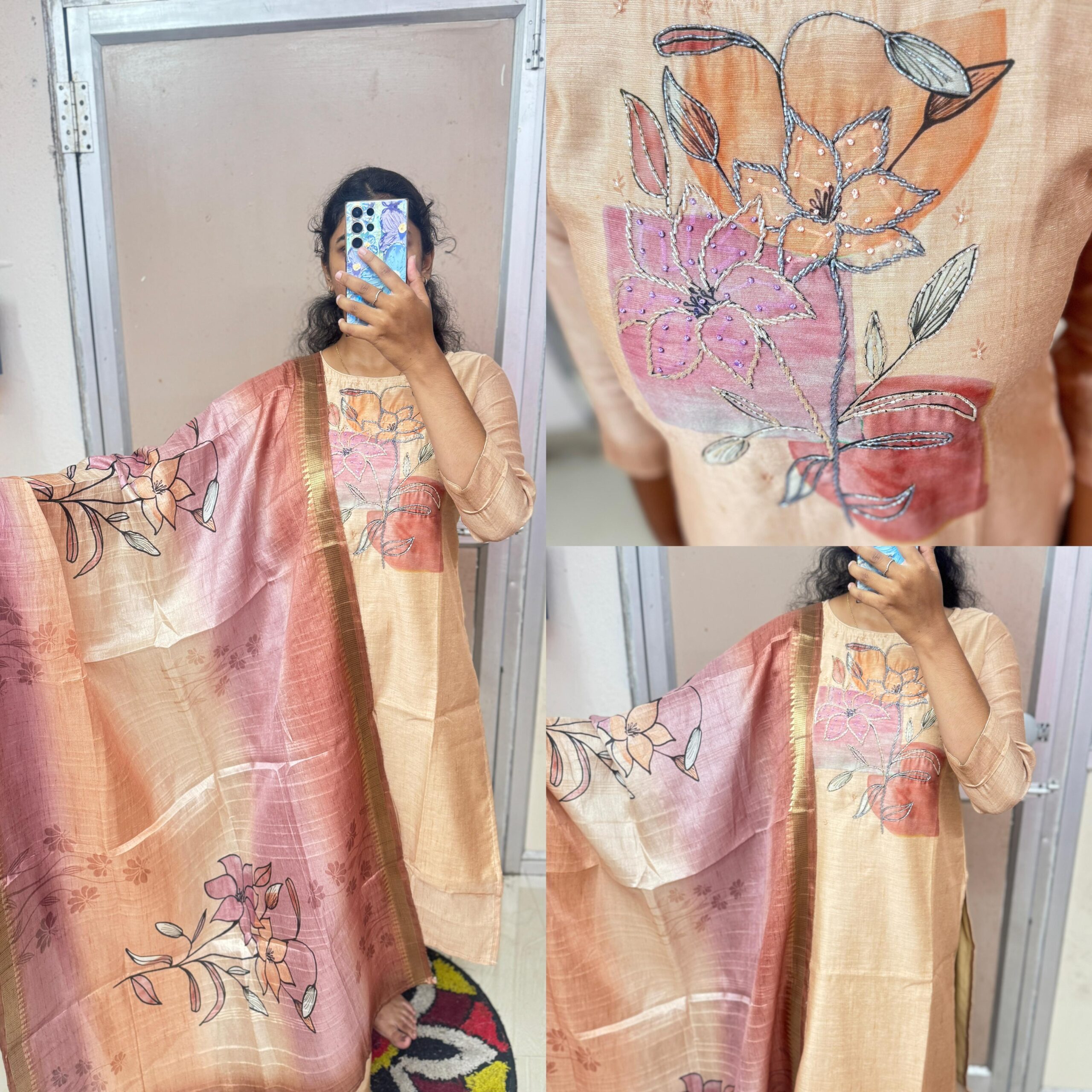 - The Warm Sunshine Handwork Kurta Set is a masterpiece designed to celebrate traditional craftsmanship and modern comfort. Imagine yourself draped in the soft yet durable fabric, beautifully adorned with intricate handwork, tailored to exude both charm and sophistication. This set is thoughtfully designed for those who prefer understated elegance without compromising on quality. Whether you’re attending a festive gathering or seeking an elevated daily-wear look, this kurta set is a versatile companion for every occasion.