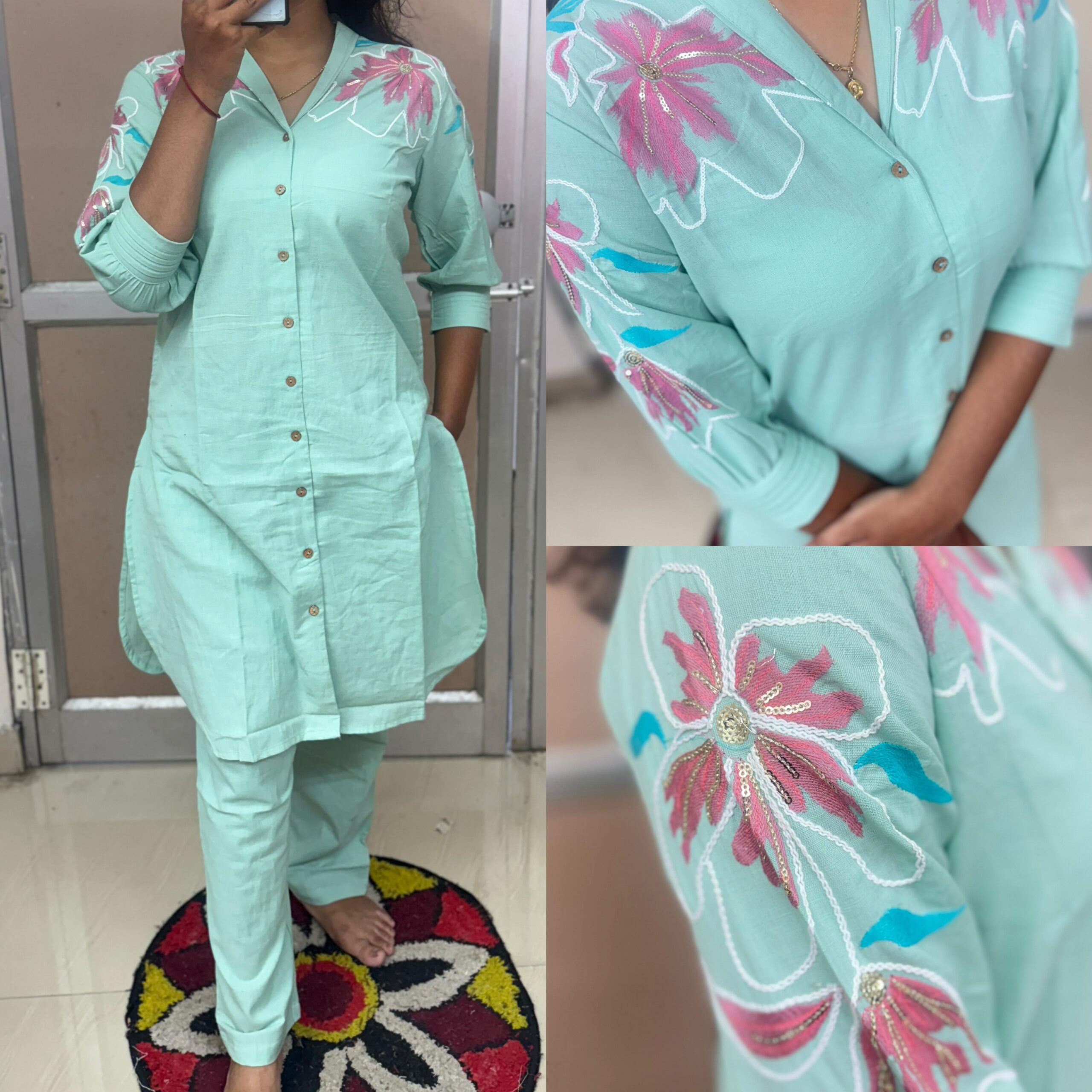 - Refresh your wardrobe with the Aqua Embroidered 2pc Kurta Set, a perfect blend of sophistication and comfort. Designed for individuals who value effortless elegance, this kurta set features exquisite embroidery and a soothing aqua color that complements all skin tones. Whether you’re dressing up for a festive occasion or seeking a chic casual look, this set promises to make an impactful fashion statement.
