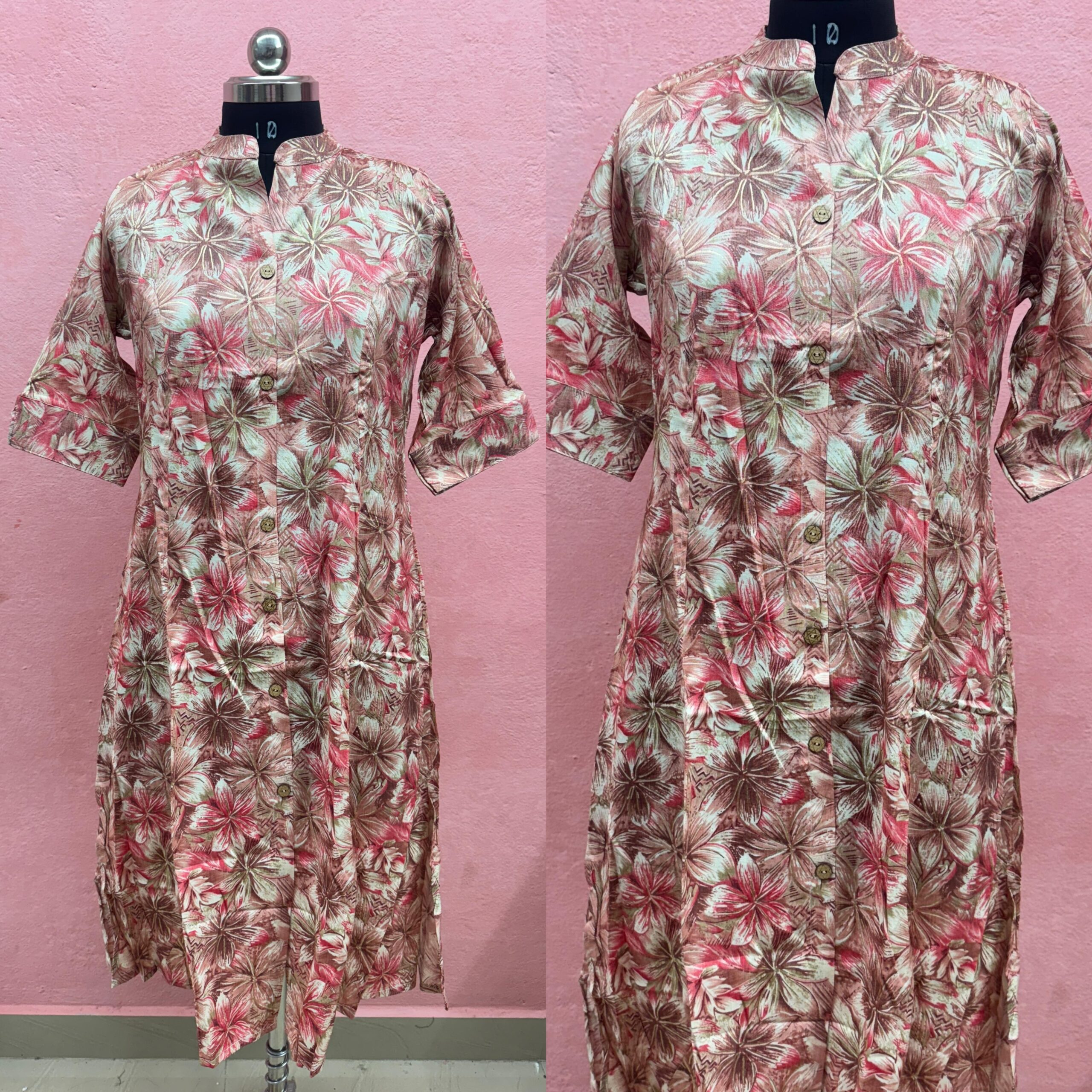 Elevate your wardrobe with this stunning Floral Kurti, showcasing a delightful pink and white floral design. Perfect for both casual gatherings and semi-formal events, this kurti offers a comfortable fit with its 3/4 sleeves and chic mandarin collar. Available in multiple sizes for a perfect fit, this kurti is an essential addition to your collection.