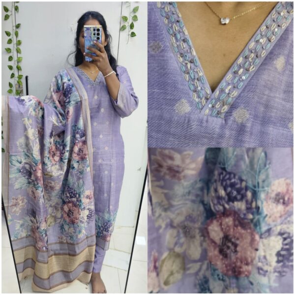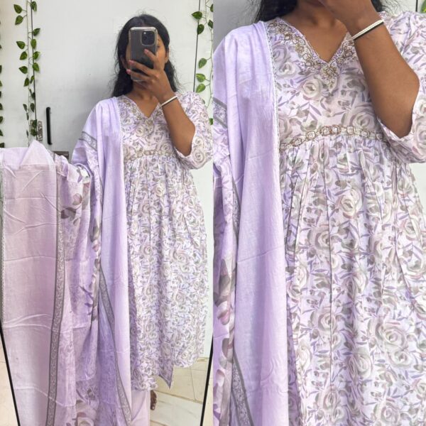 Light Purple Beats Cotton kurta With Soft Mul Dupatta set(No Lining) - PMA49
