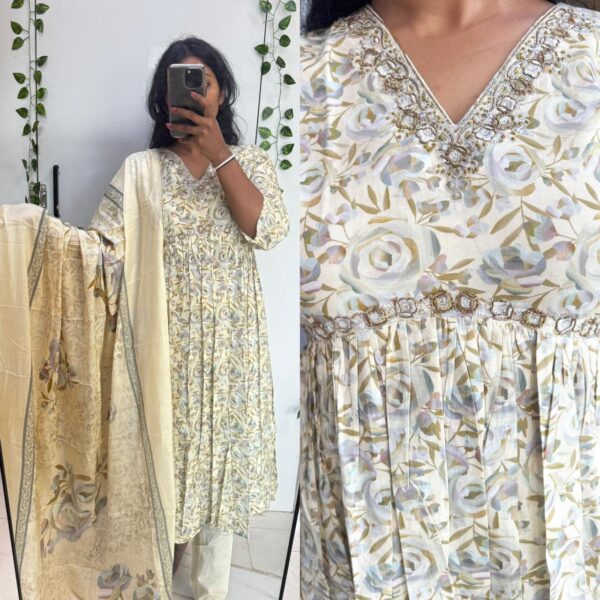 Light Cream Beats cotton kurta with Soft Mul Dupatta set (No Lining) - PMA50