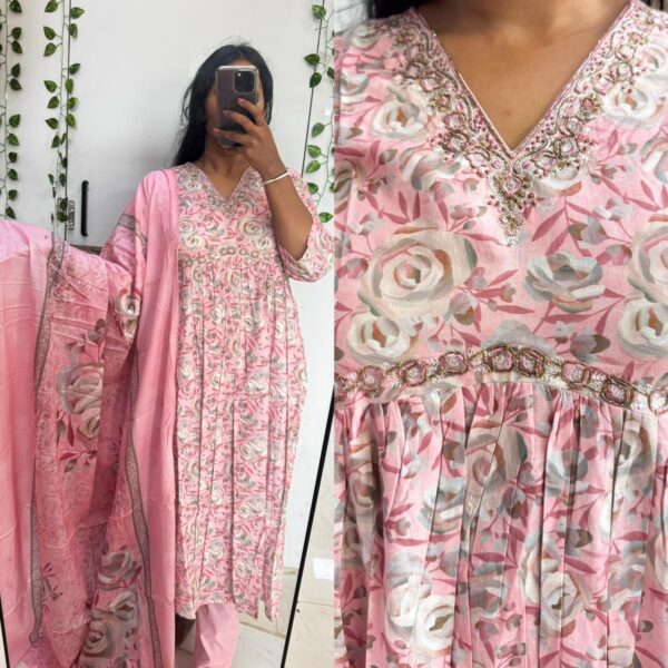 Baby Pink Beats cotton kurta with Soft Mul Dupatta set (No lining) - PMA51