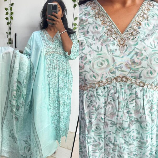 Light Blue Beats Cotton kurta with Soft Mul Dupatta Set (No Lining) - PMA52