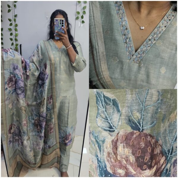 Pastel Green Premium Jamdani Linen with mulcotton lining all over embroidery kurta set (Prefer next size) - PMA54