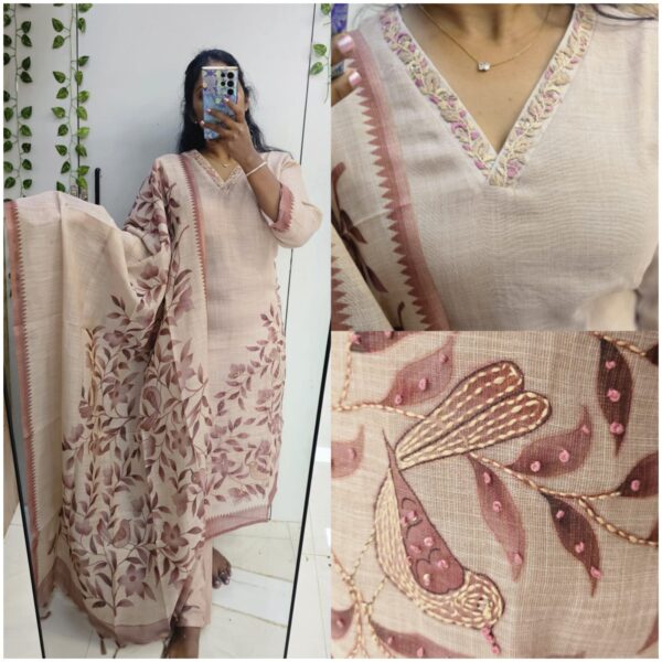 Pastel Premium Jamdani Linen with mulcotton lining all over embroidery kurta set (Prefer next size) - PMA58
