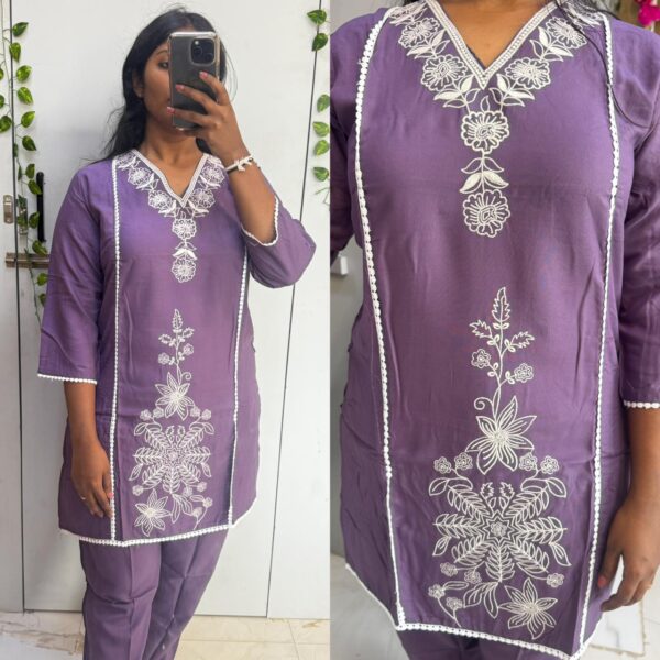 Lavender Ryon Thread embroidered 2pc Kurta Set - PMB05