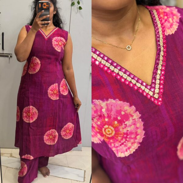 Pink Mul Chanderi Hand Paint 3pc kurta set- PREMIUM - PMA316