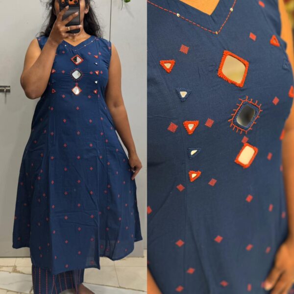 Navy Blue Cotton 2pc Kurta Set (Attached Sleeves) Prefer Next Size - PMA300