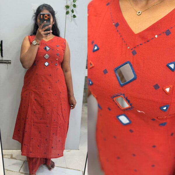 Rust Orange Cotton 2pc Kurta Set (Attached Sleeves) Prefer Next Size - PMA299