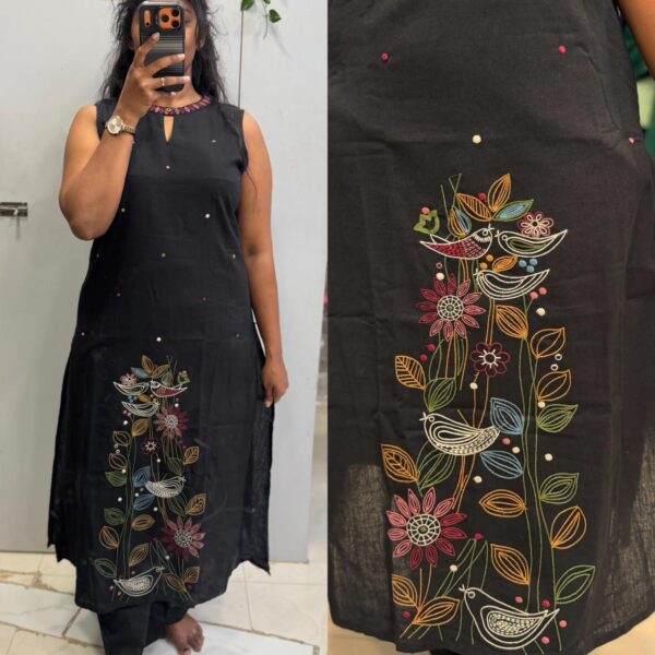 Black Flex Cotton Thread Embroidery 2pc Kurta Set (Attached Sleeves) - PMA305